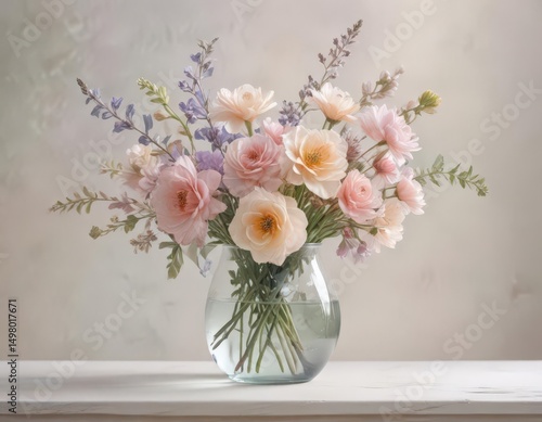 Delicate pastel watercolor blooms in a glass vase Soft hues, artistic brushstrokes , botanical, brushstrokes, palette