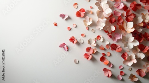 Delicate petals scattered art display minimalist studio watercolor concept soft color palette close-up view nature aesthetic