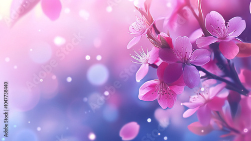 Delicate pink blossoms in soft morning light create a tranquil spring atmosphere