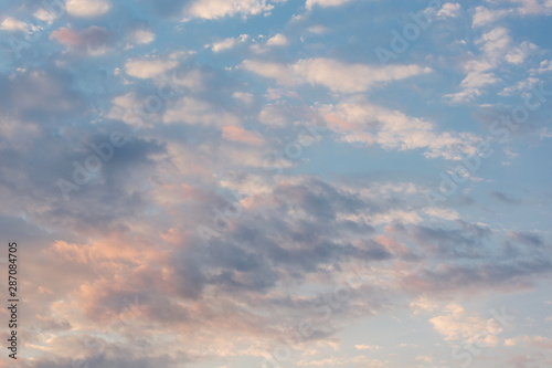 delicate pink clouds illuminated by morning sun, early morning