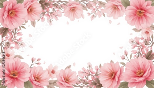 Delicate pink floral frame on a soft background suitable for romantic designs and dreamy compositions