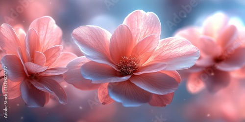 Delicate pink flower blossoms reflecting on water tranquil nature scene soft light