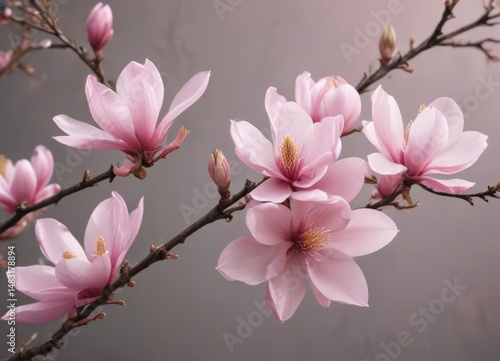 Delicate pink magnolia blossoms on a branch, spring bloom , pink, floral