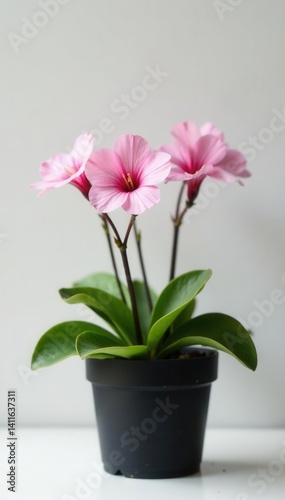 Delicate pink primrose, black pot, clean white backdrop Home d?cor , spring flower, nature, garden flower