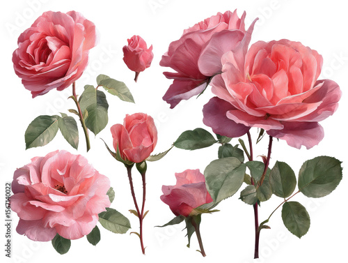 Delicate pink roses arrangement botanical garden floral natural light isolated on transparent background