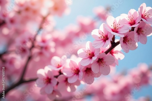 Delicate pink sakura blossoms in full bloom, forming a repeating pattern , japan, background, illustration