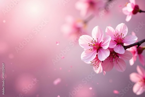 Delicate pink sakura blossoms, scattered, soft background, tree, pink, japanese