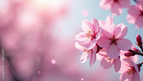 Delicate pink sakura blossoms, soft petals, gentle breeze , branch, nature, background