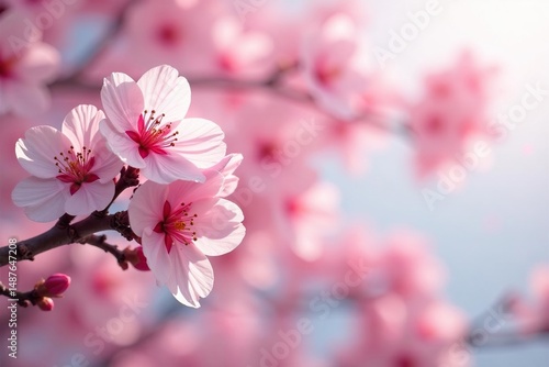 Delicate pink sakura blossoms, soft petals, gentle breeze , sakura branch, botanical