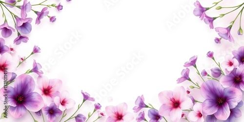 Delicate watercolor purple floral frame, soft edges, vibrant hues, nature, card