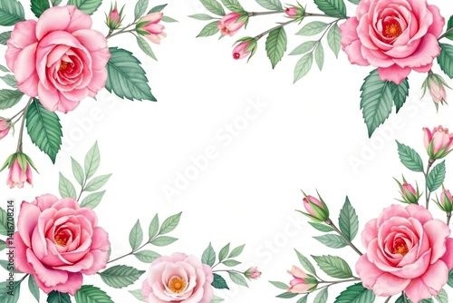 Delicate watercolor roses & leaves, repeating pattern, pink, soft, flower