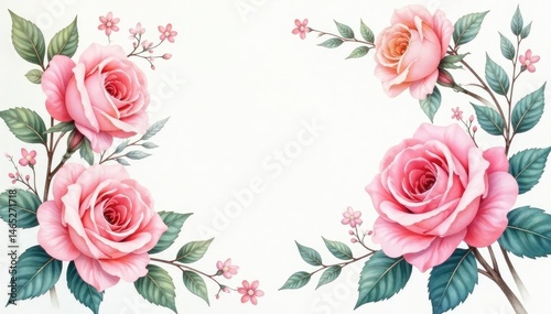 Delicate watercolor roses & leaves, soft pastel hues, delicate, print, seamless pattern