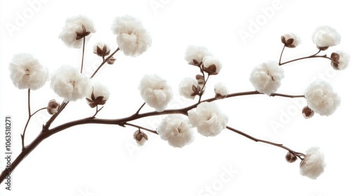Delicate White Floral Branch on White Background