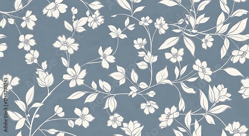 floral, pattern, white, flower, blue, background, botanical, nature, seamless, wallpaper, textile, fabric, design, illustration, vintage, shabby, chic, delicate, elegant, organic, leafy, blossom, garden, art, surface, print, muted, colours
