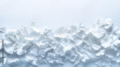 Delicate white paper petals display horizontal pure white background artistic composition minimalist view