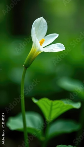Delicate white petals unfurl on Rabelera stems, white, forestfloor