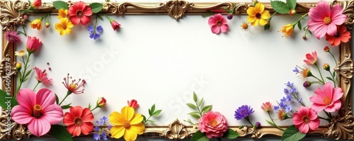 Delicate wildflowers arranged in ornate frame, texture, wildflowers, charming