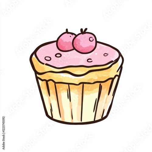 Delicious and Colorful Cupcake with Cherry Topping in a Cute Hand-Drawn Style for Food Enthusiasts
