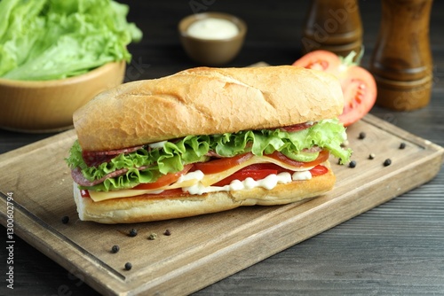 background, baguette, board, bread, calorie, cheese, closeup, cook, cooking, culinary, cut, delicious, diet, dinner, eat, food, fresh, gastronomy, epicure, grey, healthy, homemade, ingredient, lettuce, lunch, natural, nutrient, nourishment, object, organic, peppercorn, picnic, receipe, salami, sandwich, sauce, sausage, snack, table, take-away, take-out, tasty, tomatoes, wooden, deliciously