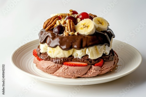 isolated, white, plate, background, culinary, vanilla, creative, strawberry, epicure, fancy, rich, walnut, indulgent, heavenly, fine dining, tasty, special occasion, exquisite, vibrant, tempting, ice cream, opulent, sweet, irresistable, cherry, glacé