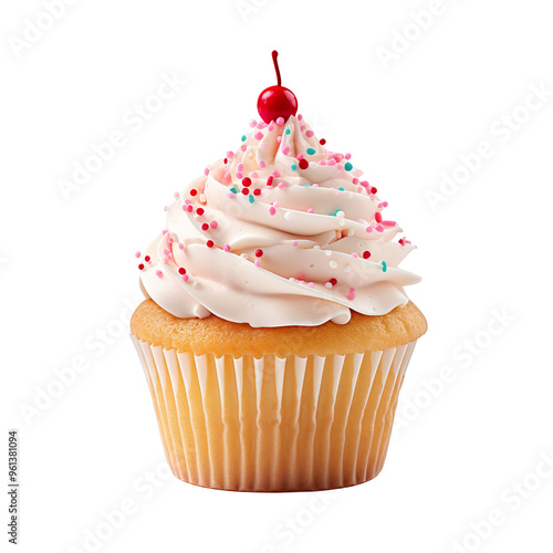 Delicious Birthday cupcake isolated on transparent and white background