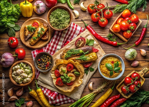 Delicious Culinary Creations on Vintage Checkered Paper: A Rustic Food Photography Experience Showcasing Fresh Ingredients and Mouthwatering Dishes for Culinary Enthusiasts