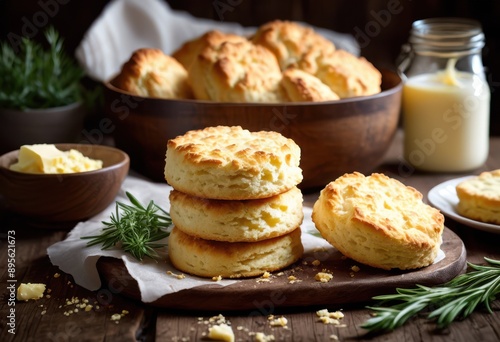 delicious fluffy buttermilk biscuits freshly baked perfection golden brown crust tender interior perfect any meal, baking, soft, breakfast, dough, rise, texture