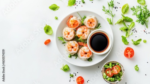 shrimp, spring roll, herb, fresh, cookery, seafood, food, meal, healthy, basil, lime, cilantro, vegetable, cooking, garnish, soy sauce, presentation, bright, colourful, asian, dining, delicacy, ingredient, nourishment, culinary, creativity, epicure, organic, tasty, receipe, sharing, plate, background, design, texture, gourmet food, modern, clean, vibrant, preparation, food photography, aesthetic, decoration, favor, enjoyment, culinary arts