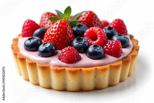 Delicious fruit tart with fresh strawberries blueberries and raspberries on white background