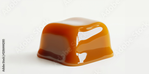 Delicious glossy caramel dessert ready for serving or decoration on a dessert plate in bright light