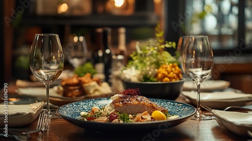 Delicious Grilled Salmon Dinner at Upscale Restaurant