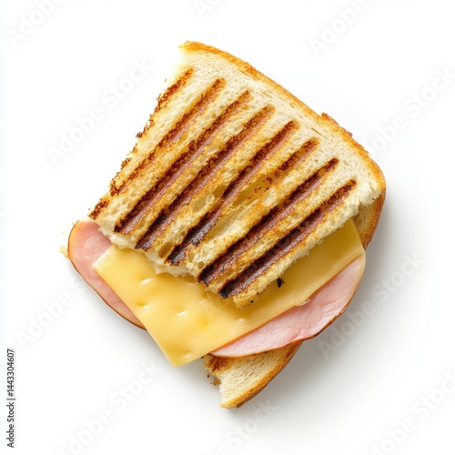 Delicious grilled sandwich with ham and cheese on white background studio shot top view food photography culinary concept simple arrangement perfect for stock photo