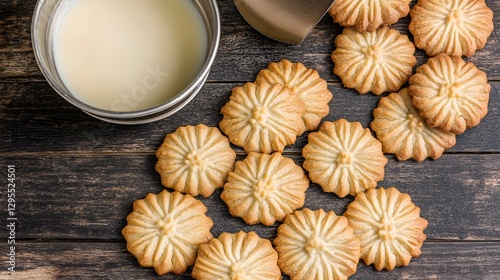 Delicious Homemade Butter Cookies with Milk on Rustic Wood