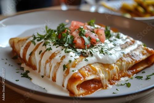Delicious Mexican Enchiladas Creamy Sauce Cilantro Garnish Authentic Recipe Tasty Food Mexican Cuisine Spicy Dish Traditional Dish Savory Flavorful