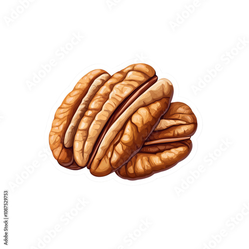 pecan, pecan, nut, nut, food, health food, healthy eating, snack, snack, ingredient, ingredient, cooking, baking, dessert, pastry, autumn, harvest, fall, brown, texture, closeup, macro, illustration, graphic, design element, sticker, clip art, isolated, white background, vector, hi-res, detail, alimentary, delicious, tasty, crunchy, organic, natural, fresh, wholesome, vitality, energy, power, protein