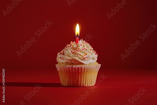 Delicious Single Cupcake with Creamy Frosting and Colorful Sprinkles: A Sweet Treat Perfect for Baking Blogs, Websites, and Food Packaging Designs. High-resolution image ideal for commercial use,
