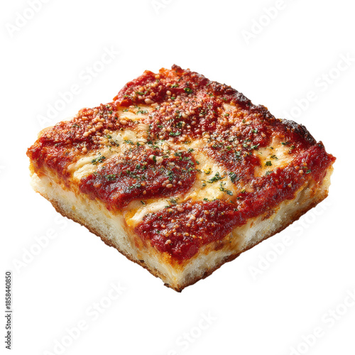 pizza, slice, square, red, sauce, cheese, herb, savoury, food, italian, crust, meal, snack, delicious, eatery, dinner, lunch, cookery, bake, cooking, fast, comfort, dining, epicure, take-out, party, homemade, tasty, pepperoni, vegetarian, hot, fresh, seasonal, culinary, crispy, flavorful, transparent, isolated, background