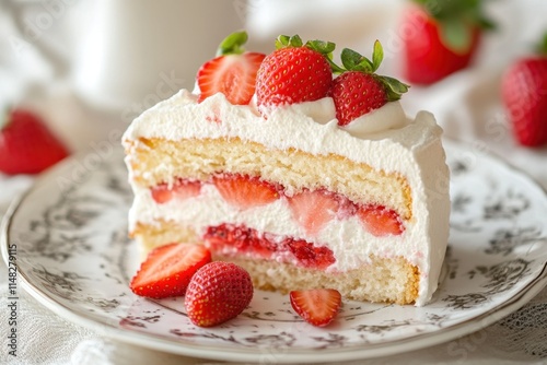 strawberry, shortcake, cake, slice, whipped, cream, dessert, sweet, delicious, tasty, treat, pastry, bakery, food, deliciously, summer, berry, red, white, fluffy, spongy, layer, moist, light, airy, fresh, juicy, fruit, confectionery, baked, sugary, plate, garnish, delectable, appetising, delightful, marvellously, heavenly, deliciously, exquisite, charming, pretty, elegant