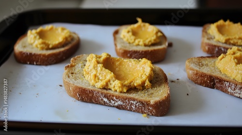 Delicious Toasted Bread with Creamy Orange Spreads, Gourmet Appetizer Food Photography