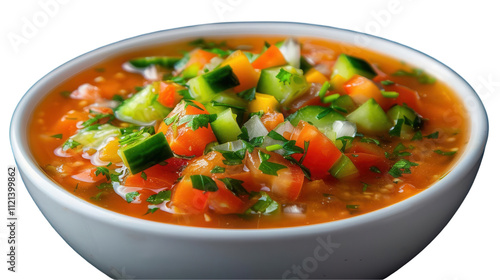 Delightful gazpacho bowl kitchen table culinary treat bright setting close-up view transparent background charm