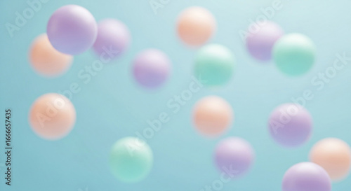Delightful pastel spheres gently float against a serene blue background creating a whimsical, dreamy atmosphere for creative projects