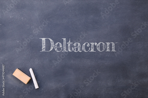 Deltacron written on a blackboard. Mix of Delta and Omicron variants