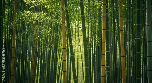 Dense bamboo forest with sunlight natures tranquility and greenery