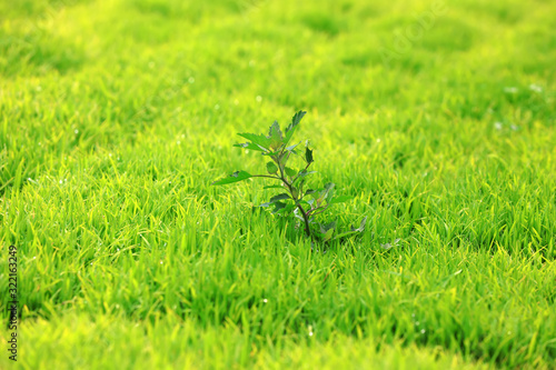 densely grown rice seedlings on the farm