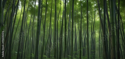 densely packed bamboo forest with multiple layers of straight growing shoots, undergrowth , layered vegetation, foliage