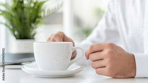 Dentist sitting in the office with a cup of coffee