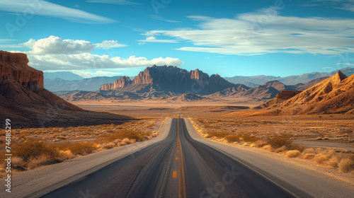 Desert Highway Journey through the American Southwest Mountains under a Clear Sky