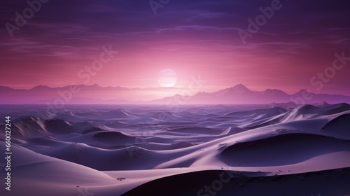 desert landscape with sand dunes and magenta gradient starry sky. scenic modern background.