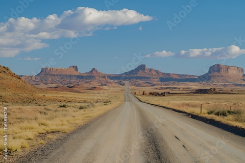 Desert Road Leading to Majestic Sandstone Buttes