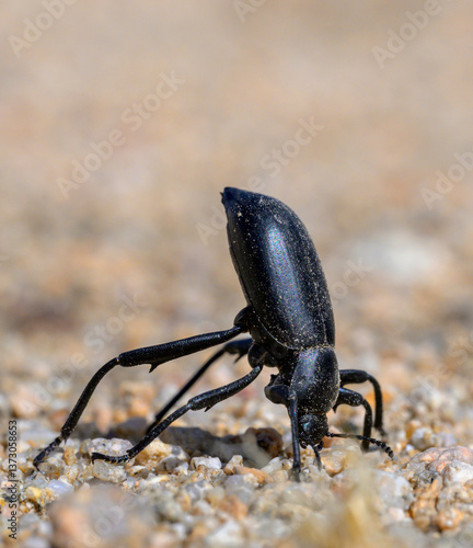 Desert Stink Beetle (Eleodes armata) in defensive posture, Mojave National Preserve, Kelso Sand Dunes, California, USA.